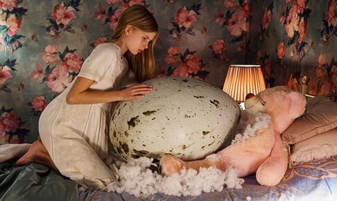 ヒッチコック『鳥』ばりにカラスが部屋に侵入し死闘の末、抹殺するところから始まる。そのトラウマを抱えた少女は森で卵を見つけ、部屋で育て始める。やがて卵は巨大化し孵化するのだが、それは家族を脅かす地獄の始まりであった。