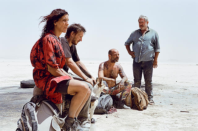 恐怖の報酬が恍惚の幻影に包まれ、タナトスとデスペアの辺獄へと迷い込む本作は位相をずらした人生観としてのロードムービーを純粋な形でイメージに焼き付ける。人生はオープンワールドゲームのように開けている。ヤバくなったら後戻りできるように思えるが、案外一方通行なもんで、走り出したら最後、安易に旅から降りることもできないし、予測不能な旅の中で思わぬ終点へと辿り着く可能性がある。ガス・ヴァン・サントは『GERRY ジェリー』において、敷かれたレールから外れるように荒野へ迷い込み内なる世界へと沈む物語を構築していった。一方で『シラート』は現実世界から隔離されたような極限の大地の中に現実における多様なコミュニケーションと団結、夢へ向かう様を描いている。故により《人生》そのものが映画に投影されているのである。親子がついていく一団はジェンダーも国籍も異なる。そして手や足がない者もレイヴを目指す仲間として等しく扱われ、運命共同体として感情を交えていく。イカれた連中でありながら、互いに一定の距離で尊重し合うあるべき人間社会が形勢されているのだ。